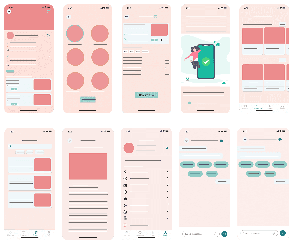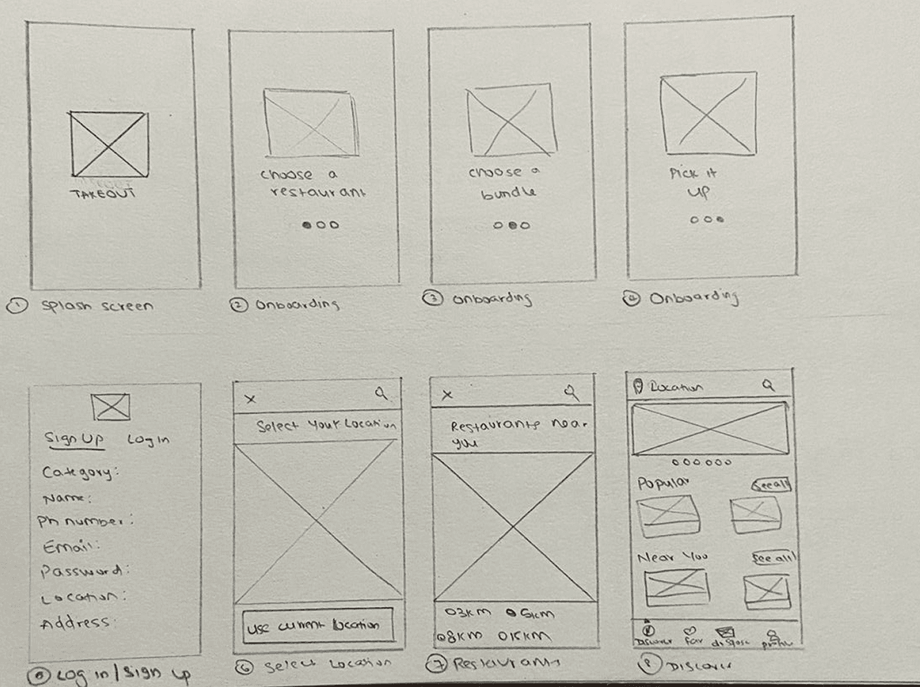 Initial sketches explored three structural approaches: a feed-first model, a map-first model, and a search-first model. User feedback from testing strongly favored the map-first approach for proximity-based discovery, which became the foundation for all subsequent iterations.