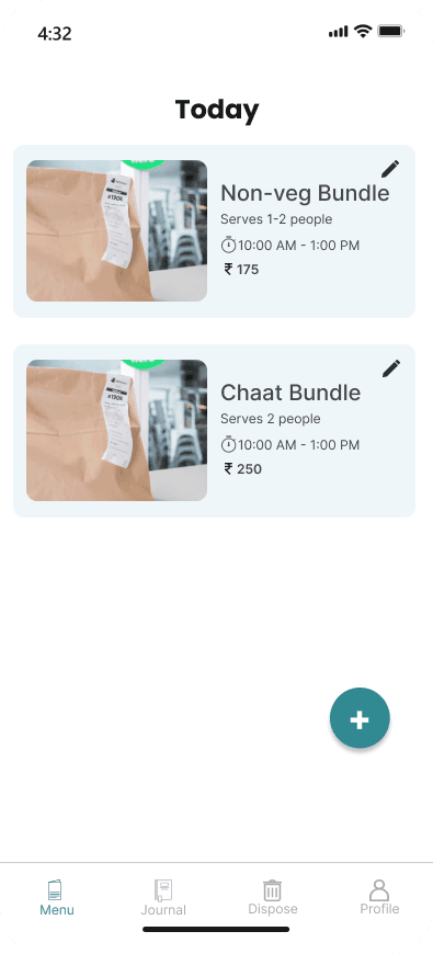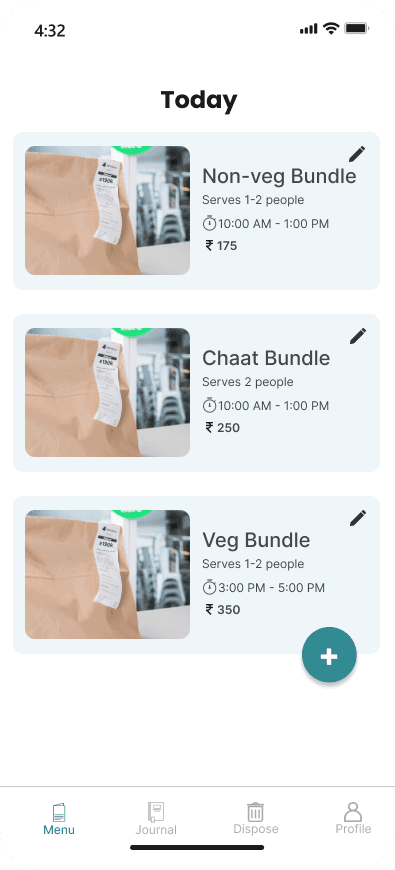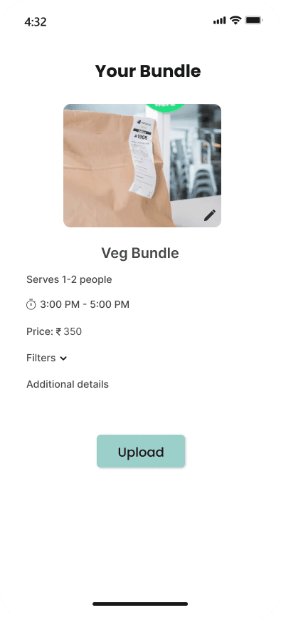 This flow allows hotels to easily add a bundle of food on the application. They can see the older bundles added on the same day and can upload a new one with ease