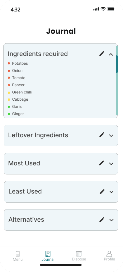 Menu, journal, and dispose icons caused confusion.